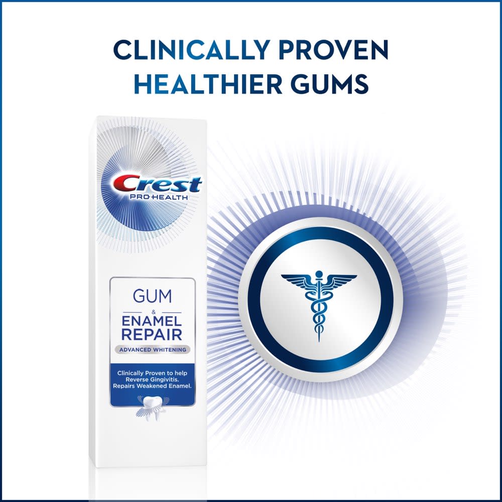 Gum problems are the root of some key oral health issues. Use Crest Gum & Enamel Repair toothpaste to prevent gingivitis while receiving the benefits of Crest. Clinically proven to help reverse gingivitis. It targets the gum line to help neutralize plaque bacteria and penetrates the tooth's surface to repair weakened enamel.